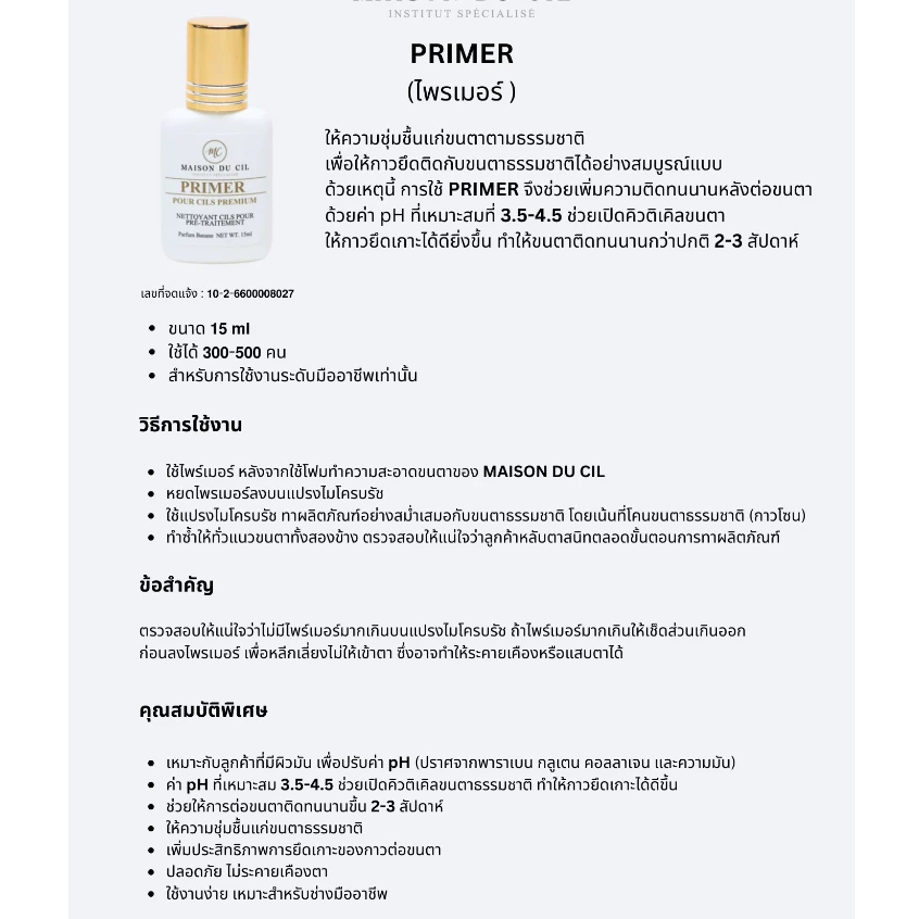𝗣𝗿𝗲-𝗧𝗿𝗲𝗮𝘁𝗺𝗲𝗻𝘁 𝗣𝗿𝗶𝗺𝗲𝗿 ให้ความชุ่มชื้นแก่ขนตาธรรมชาติ เพื่อช่วยให้กาวยึดติดอย่างสมบูรณ์แบบและเพิ่มความติดทนนานหลังการต่อขนตา